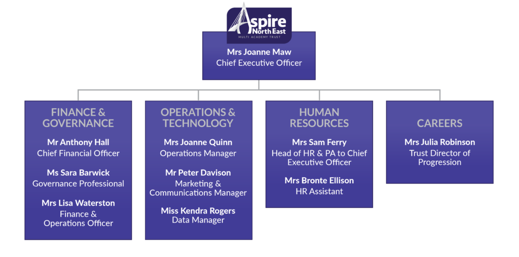 At the Aspire North East Trust we very much see ourselves as a family. We therefore help each other out by sharing expertise, ideas and resources to help our member schools flourish. Behind this army of teaching talent lies a ‘back office’ support network who quickly deploy professional support services to the schools who join our family. These staff members work across all of our schools to help our trust function smoothly.