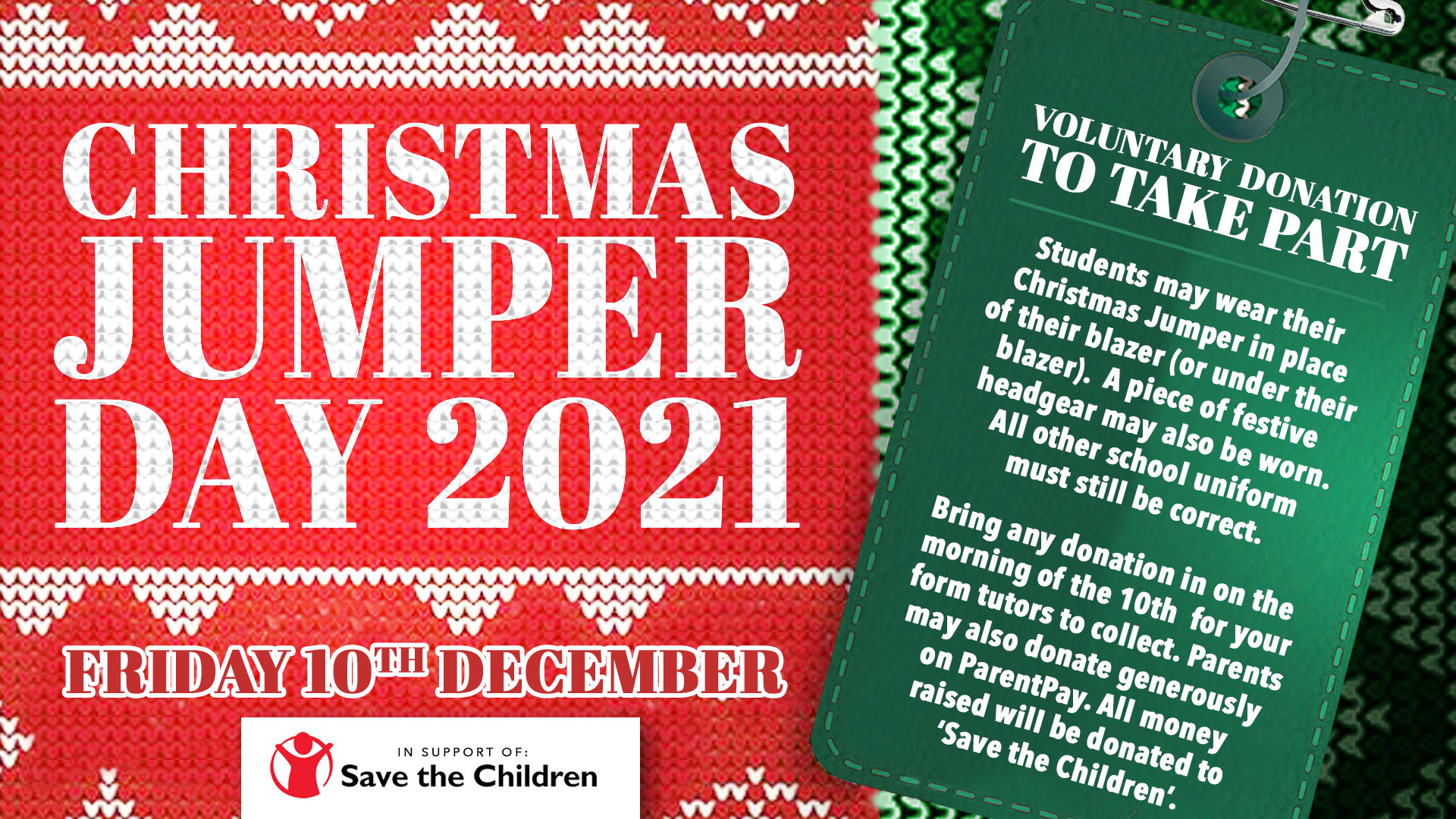 Despite the school closure we are delighted to continue to have received your kind donations for Christmas Jumper Day in aid of Save the Children via Parent Pay. With your help we raised an impressive £230.50. It was even nice to see students and teachers sending us pictures of them pulling on their festive pullovers for the day’s live lessons. Thank you once again to everyone who took part!
