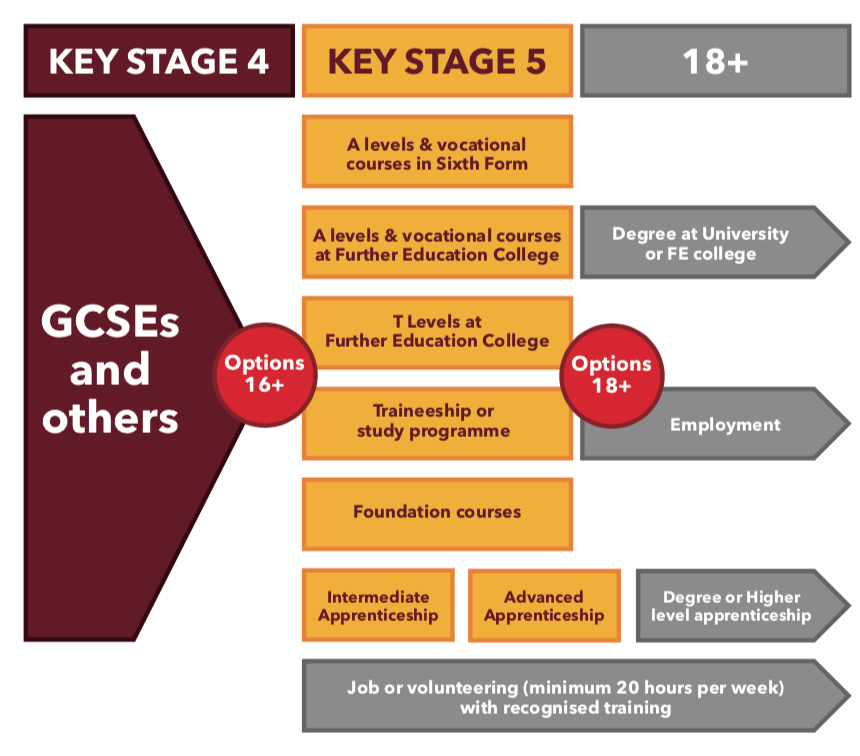 From September 2015 the participation age was increased until a young person’s 18th birthday. This does not mean staying in school, you can opt to study or train in any of the following ways:
