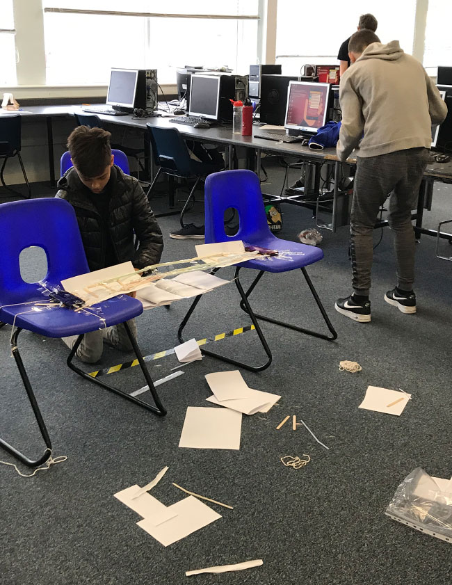We challenged our key-worker children group with an engineering task. Pupils were challenged to build a bridge spanning two chairs using only paper straws, card and string. We then tested their creations to see how much weight they could hold with varying results!