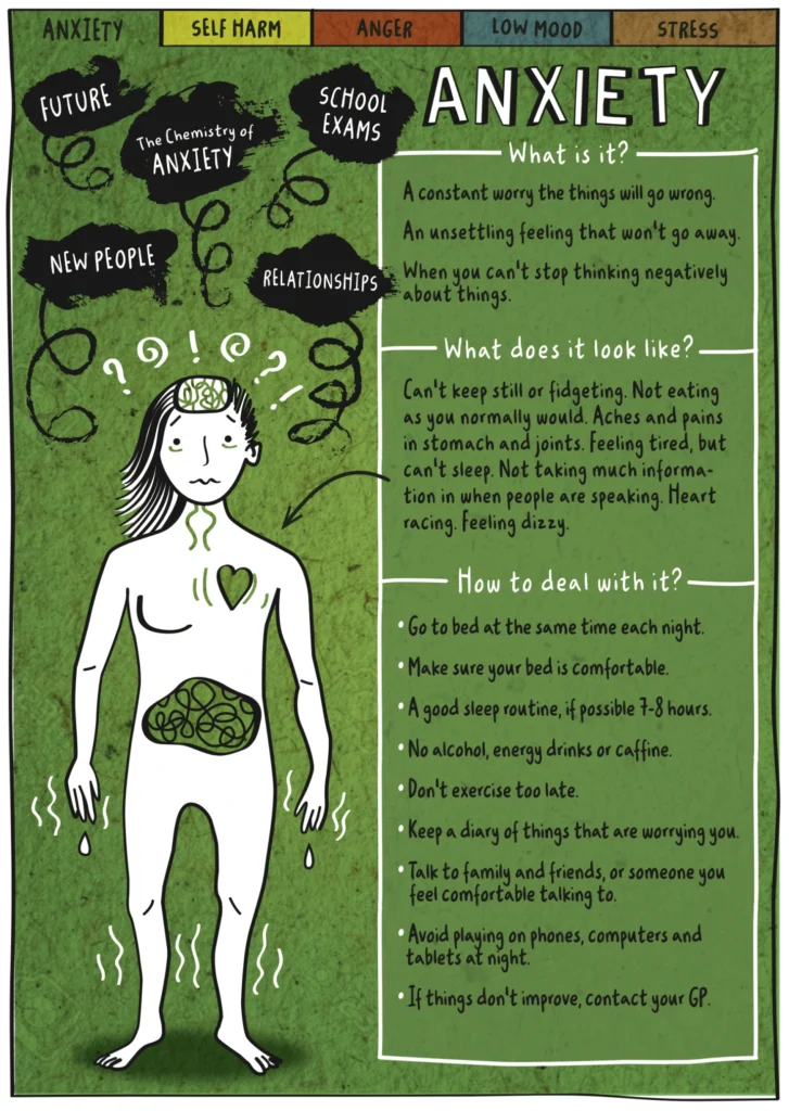 Visit the NHS mental health and wellbeing advice website for self-assessment, audio guides and practical tools, if you are experiencing stress, feelings of anxiety or low mood.