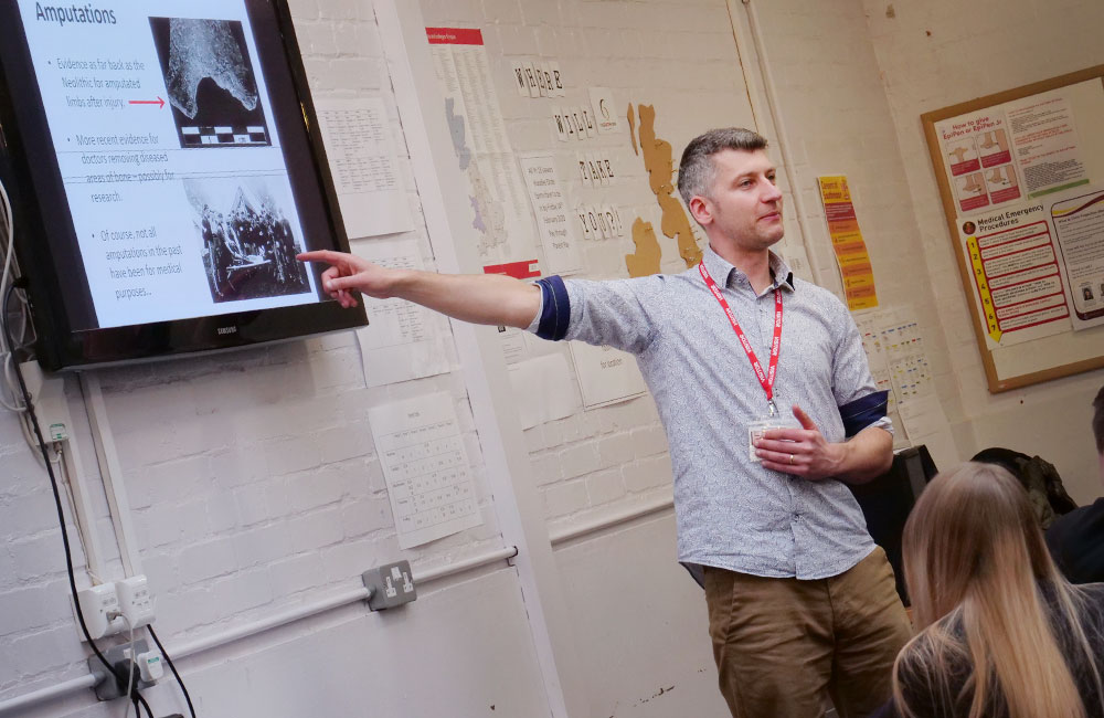 Southmoor Scholars got up close and personal with skeletons. Durham University ran a workshop about the history of medicine through the lens of bioarchaeology. They had three tasks: 1. To assemble a skeleton. 2. To analyse amputated bones and trepanned skulls. 3. To look at a series of gun-shot skulls and work out their stages of healing.