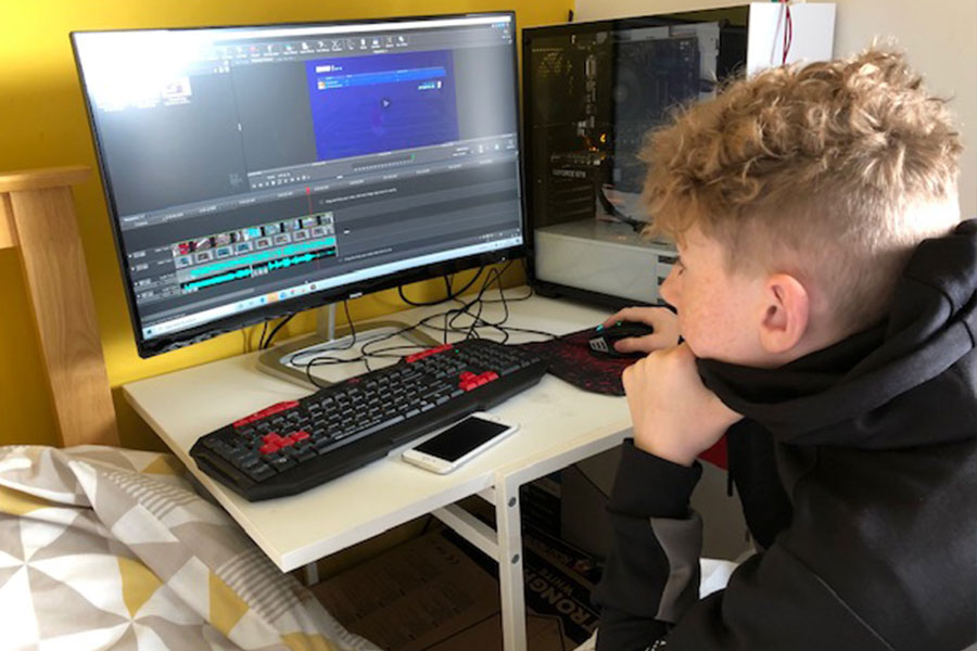 Aaron Douthwaite has taught himself to use video editing software.